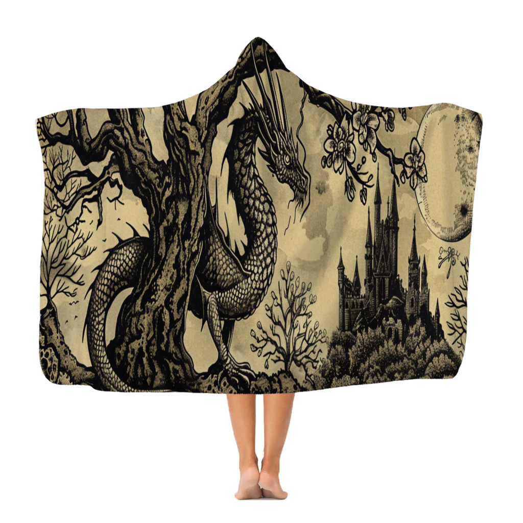 Wrap yourself in ancient magic with our Moonbound Dragon Hooded Blanket. Feels like wearing a warm spell, let this blanket keep you cozy around the campfire, in the chill breeze on your favorite beach, on a mountain summit or in your home!